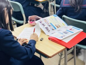 8つの企業・団体等が参加し、当社には3時間目、4時間目と合わせて計47名の生徒が来てくださいました。メモを取りながら、真剣に話を聞いてくれました。今後の学校生活・キャリアに少しでもお役に立てたのならばうれしい限りです。