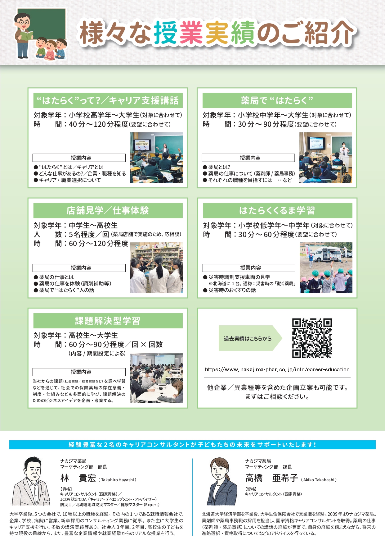 ナカジマ薬局は、社会貢献活動の一環として、子どもたちに向けたキャリア支援に取り組んでいます。