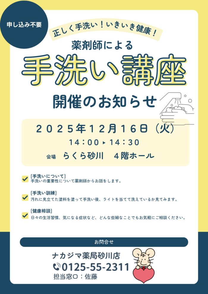 12/16【砂川店】手洗い講座イベントを開催いたしました