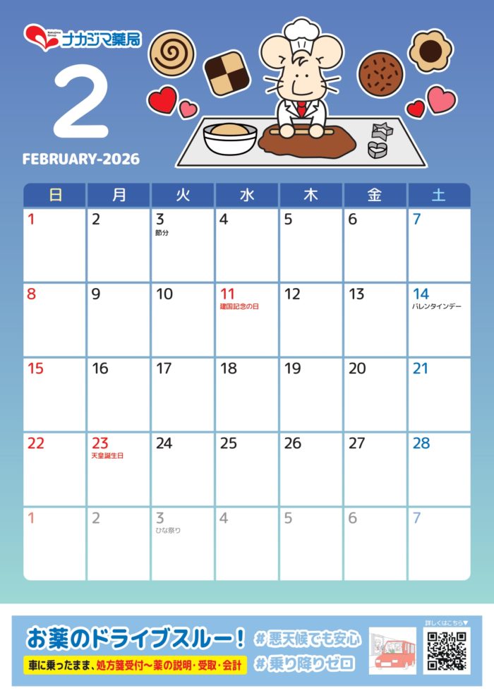 ■いっぷく先生カレンダー2026【2月】