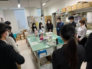 薬局の基本的な設備や業務内容に加え、弊社が取り組む先進的なサービスにも触れていただき、学生の皆様には大変熱心にご見学いただきました。