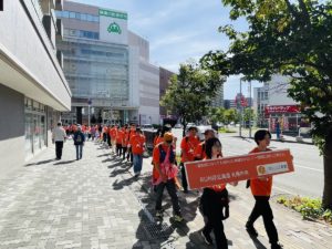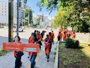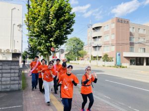 「認知症になっても住みよい地域をめざして,明日に向かって走ろう」を合言葉に、RUN伴ていね2024からタスキを受け取り、桑園認知症ケア研究会(オレンジ桑園) のメンバーや学生を中心に桑園地区を歩き、走りました。